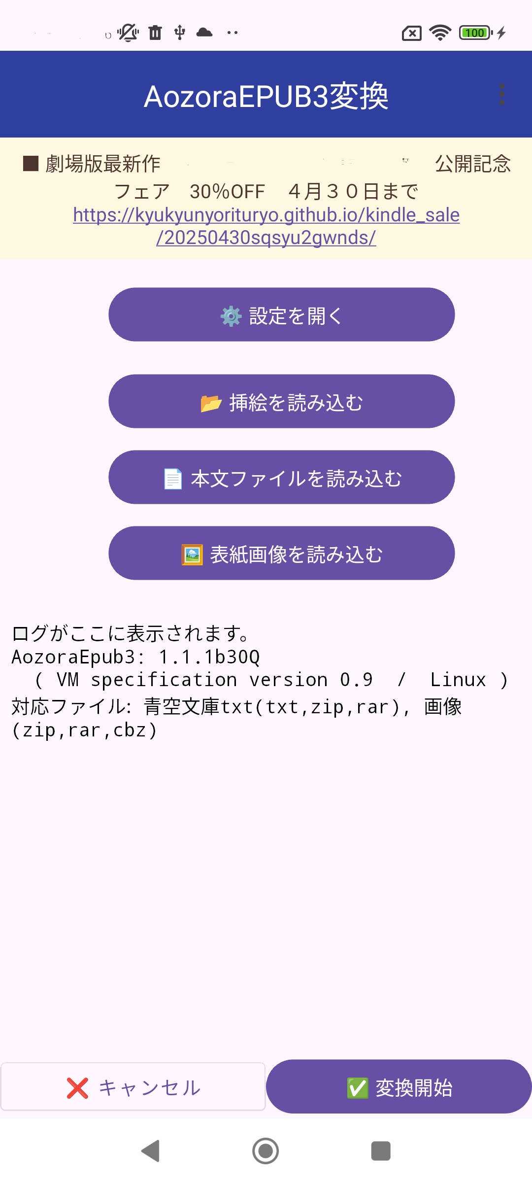 - 「変換開始」ボタンをタップすると、EPUBファイルが作成されます。